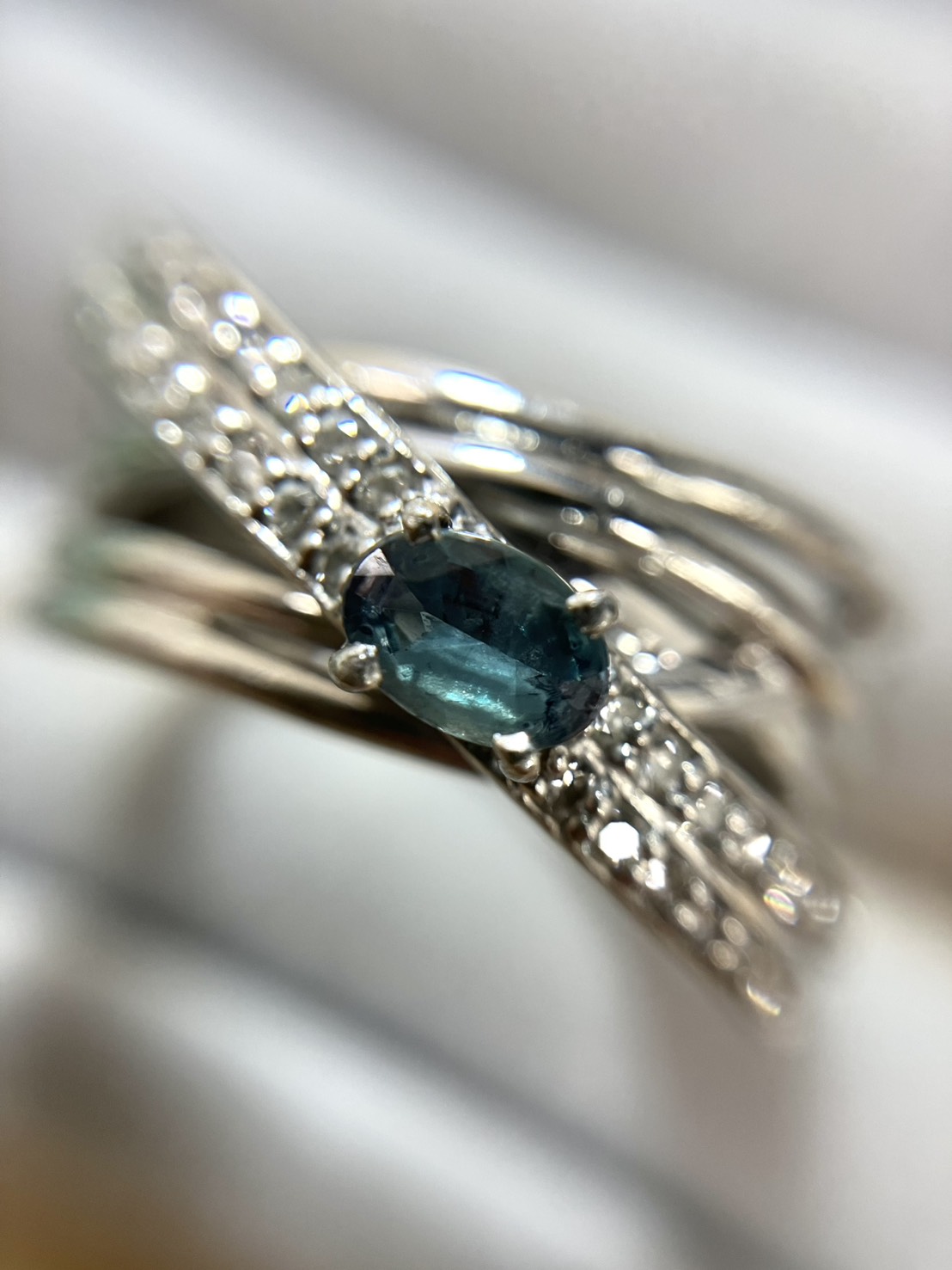 光によって緑色、青色、ピンクのように色合いが変わる大変珍しい性質を持つ高価な宝石です💎